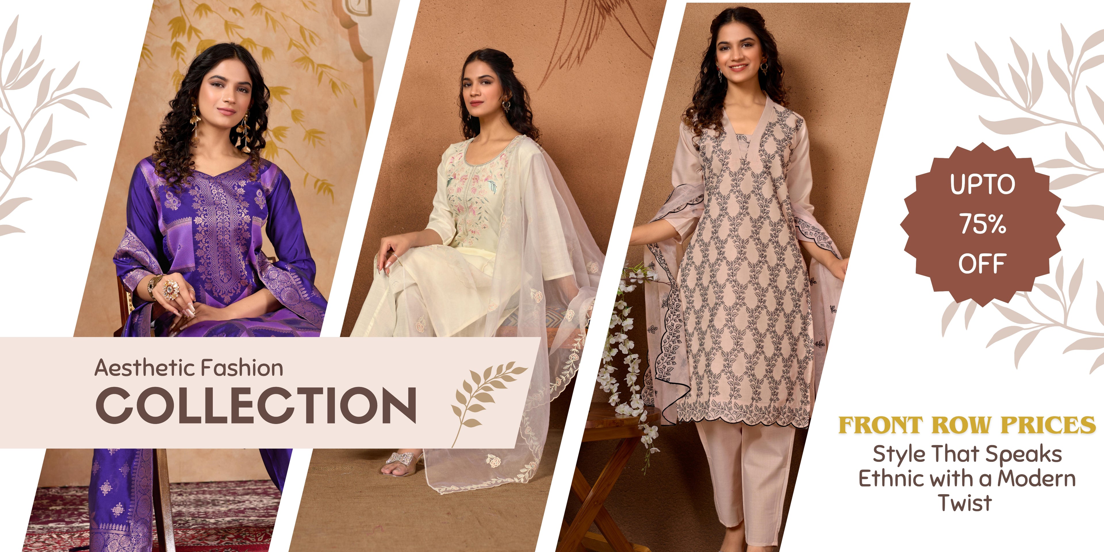 Stylish Peach Kurta Set with Black Embroidery & Dupatta