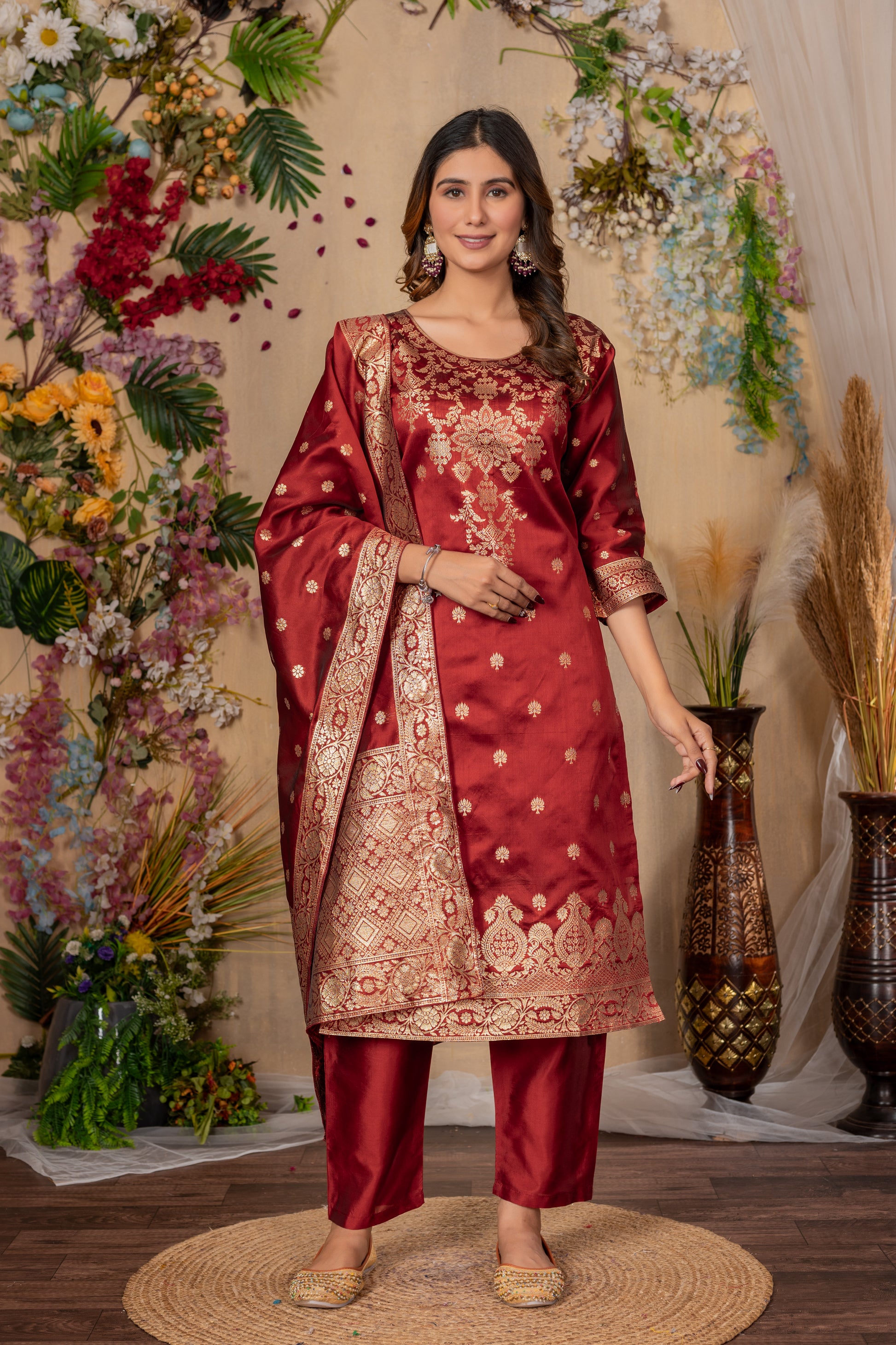 Banarasi Silk Woven Kurta, Pant & Dupatta Set